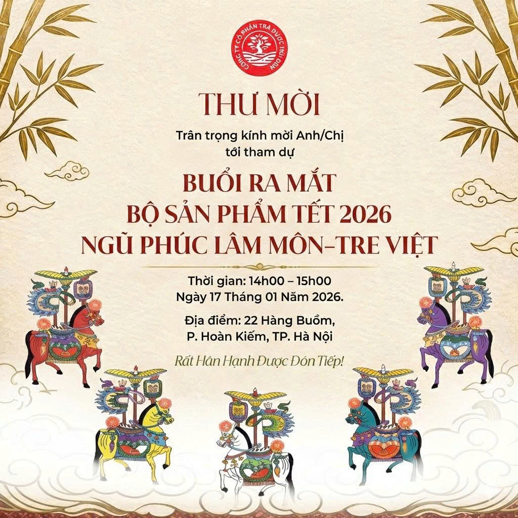 Chào đón Xuân Bính Ngọ 2026, Công ty Cổ phần Trà Dược Núi Đèn trân trọng kính mời Quý khách hàng, Quý đối tác đến tham dự buổi Tiệc Trà Khai Xuân đặc biệt. Sự kiện diễn ra giữa lòng phố cổ Hà Nội, đánh dấu sự ra mắt của hai bộ quà tặng tâm huyết, là sự kết tinh hoàn hảo giữa tinh hoa núi rừng Đông Bắc và bề dày lịch sử văn hóa kinh kỳ.